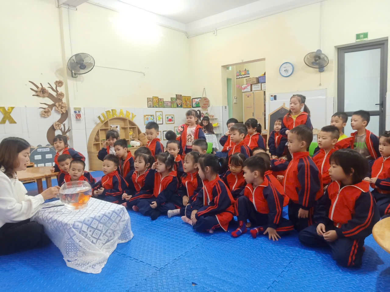 Hoạt động khám phá con cá vàng giúp trẻ mở rộng hiểu biết về thế giới động vật xung quanh. Thông qua việc quan sát, trò chuyện và nhận biết các đặc điểm của cá vàng như đầu, mình, đuôi, vây và môi trường sống dưới nước, trẻ phát triển khả năng nhận thức và tư duy. Đồng thời trẻ được rèn luyện kỹ năng ngôn ngữ khi mạnh dạn trả lời câu hỏi, diễn đạt những điều mình quan sát được. Hoạt động còn giúp trẻ hình thành kỹ năng quan sát, so sánh và ghi nhớ. Bên cạnh đó, trẻ được giáo dục tình cảm biết yêu quý, chăm sóc và bảo vệ các con vật sống dưới nước. Những hình ảnh cá vàng bơi lội nhẹ nhàng với màu sắc đẹp còn giúp trẻ cảm nhận vẻ đẹp của thiên nhiên, tạo sự hứng thú và niềm vui trong học tập. Qua đó góp phần phát triển toàn diện cho trẻ về nhận thức, ngôn ngữ, tình cảm và kỹ năng xã hội.