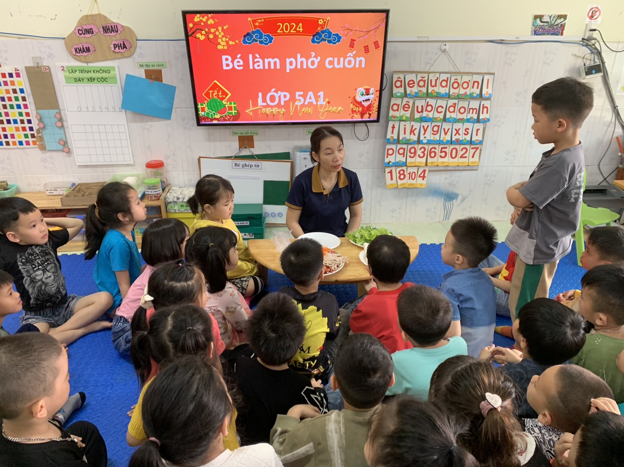 🥰🥰🥰Hoạt động trải nghiệm làm “Phở cuốn” của các bé lớp 5A1 trường MN Thuỷ Triều Qua hoạt động trải nghiệm đã giúp các con được khám phá thế giới nhiều màu sắc phong phú của các nguyên vật liệu làm phở cuốn như giò, xúc xích, trứng, dưa chuột ..., được làm quen với việc “tự tay” làm món mà mình yêu thích khiến cho các con ai cũng vô cùng hào hứng và say mê. Nhìn những đôi tay vụng về chăm chú cuốn từng bánh phở trông mới đáng yêu làm sao. Niềm vui cảm xúc tận hưởng món ăn ngon biểu hiện trong từng động tác: sờ và nếm… của các con. 🍽️🍽️🍽️ Đây là những hình ảnh của các con sau buổi trải nghiệm:
