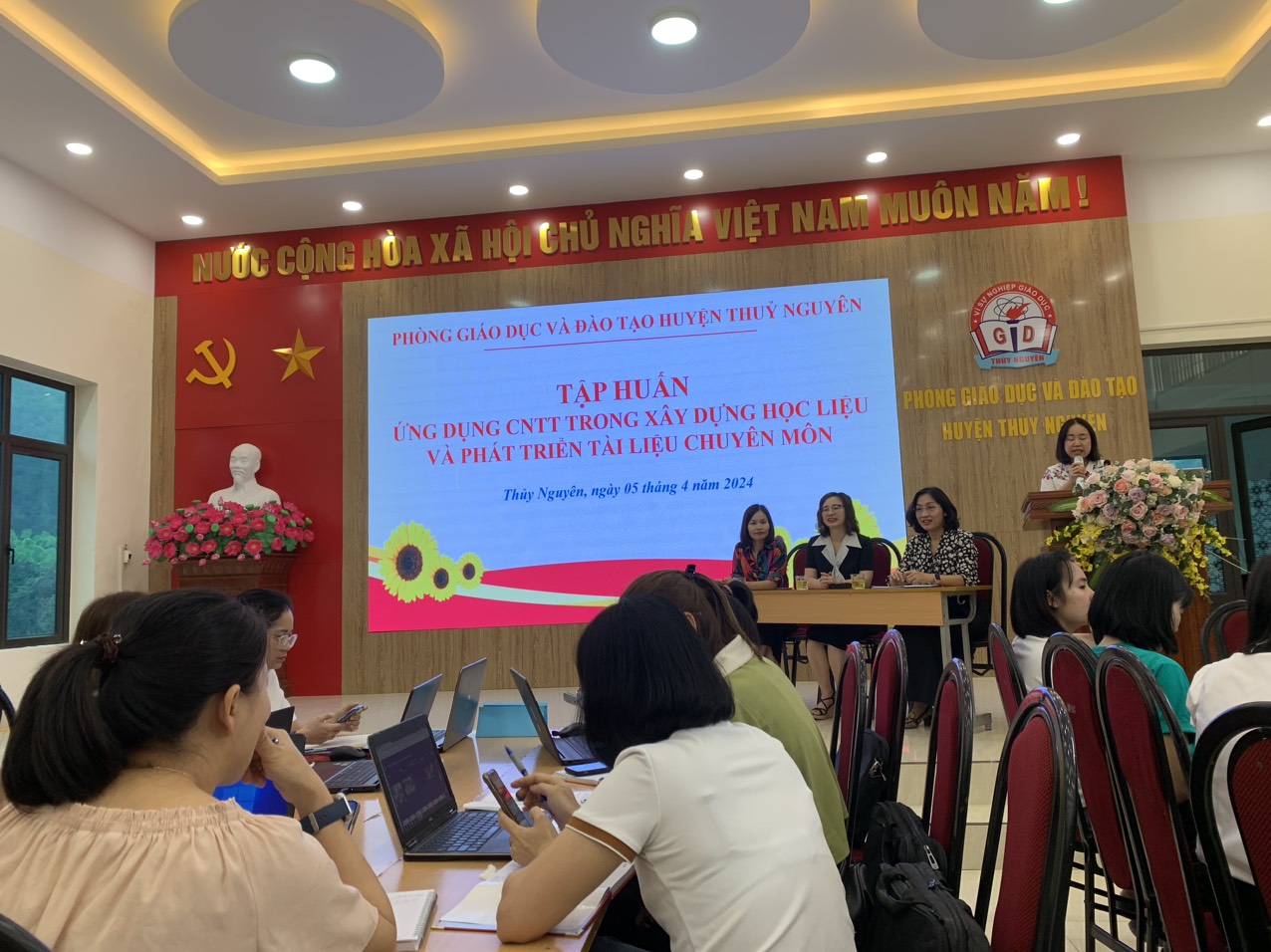 Vào ngày 5/4/2024 đến 6/4/2024, PGD & ĐT huyện Thủy Nguyên đã tổ chức buổi tập huấn "Ứng dụng công nghệ thông tin trong xây dựng học liệu và phát triển tài liệu chuyên môn" cho 102 cán bộ, giáo viên các trường mầm non trong huyện. Buổi tập huấn được tổ chức nhằm nâng cao nhận thức của đội ngũ giáo viên về tiềm năng và lợi ích của CNTT trong giáo dục mầm non, đồng thời hướng dẫn giáo viên cách thức ứng dụng CNTT vào hoạt động dạy học một cách hiệu quả.